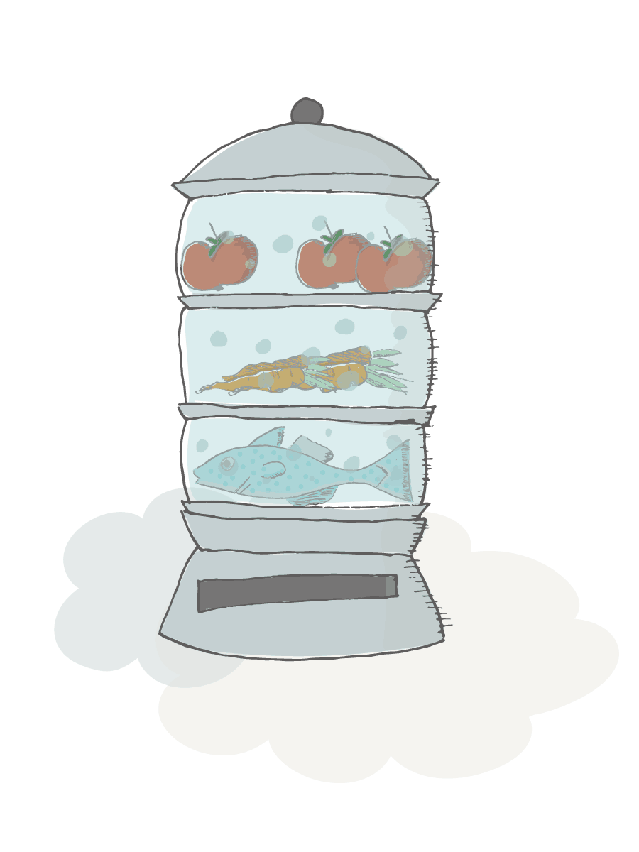 Durch das verkochende Wasser entsteht Dampf, der durch kleine Öffnungen bzw. Leitungen in die Garkammern weitergeleitet wird. In diese Garkammern kannst du die gewünschten Lebensmittel legen, welche dann schonend und gleichmäßig erhitzt bzw. gegart werden.